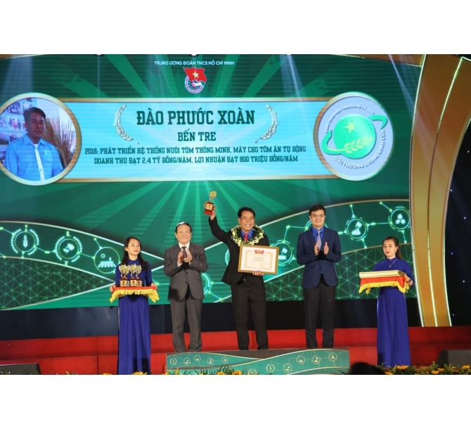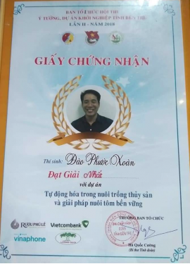 Hệ thống có thể tự động cho tôm ăn, hút cặn bã thải, tạo oxy trong ao nuôi giúp tôm phát triển khỏe mạnh. Tại khu triển lãm Techfest 2018 vừa tổ chức tại Đà Nẵng, mô hình khởi nghiệp sáng tạo nuôi tôm thông minh của Đào Phước Xoàn (29 tuổi, ấp An Thạnh, xã An Thạnh, huyện Thạnh Phú, Bến Tre) thu hút nhiều khách quan tâm.